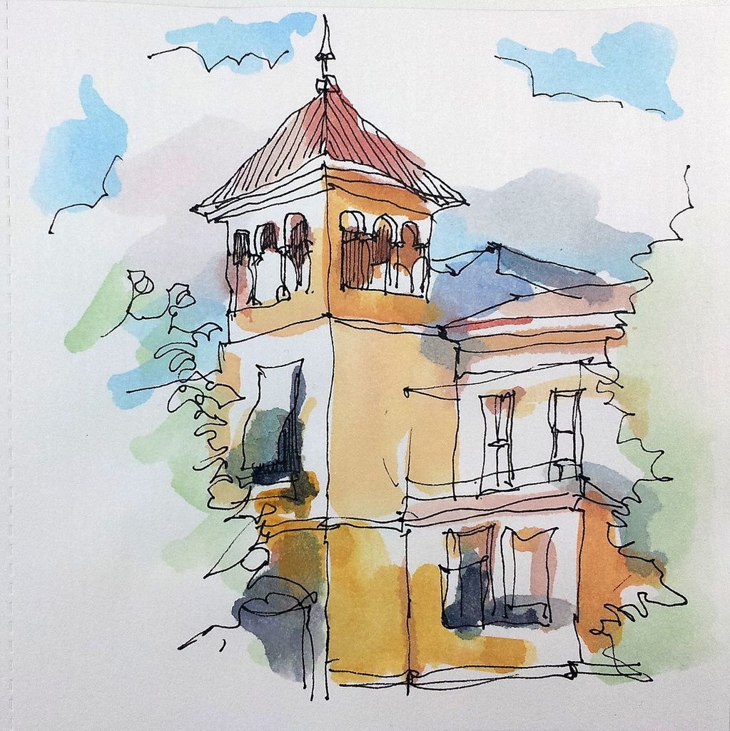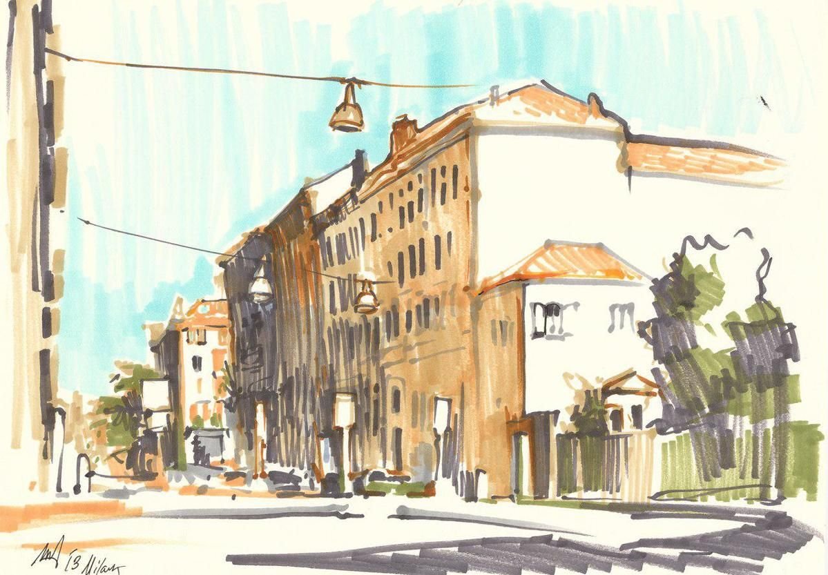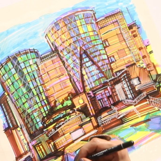 Скетчинг спиртовыми маркерами архитектура