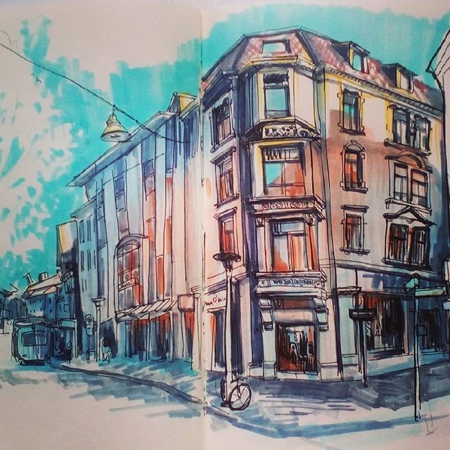 Анна Эгида городской скетчинг маркерами