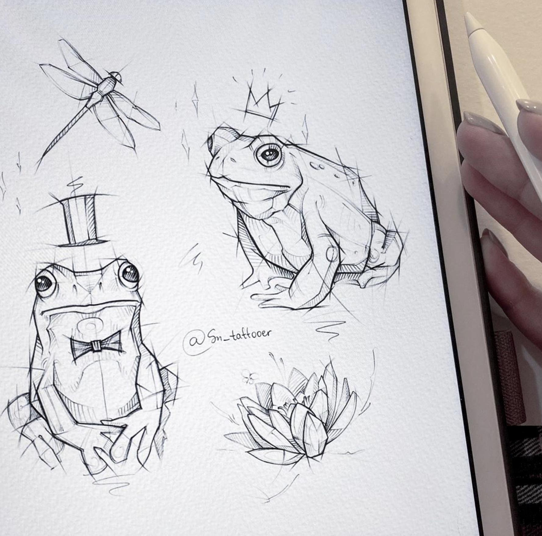 Акварельный скетч лягушка
