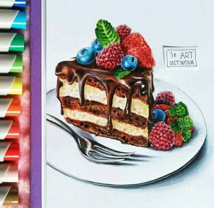 Тортик скетч маркерами