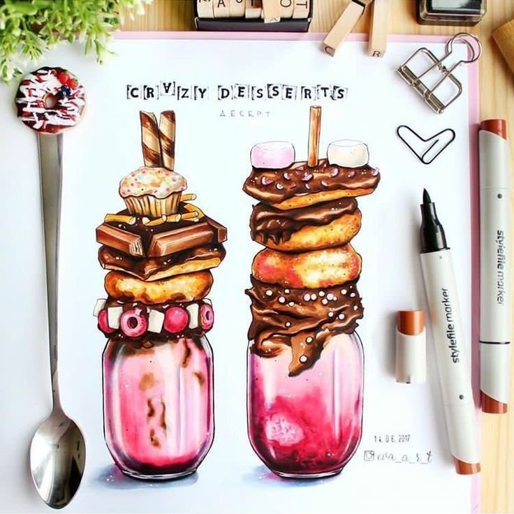 Скетчи маркерами еда Десерты