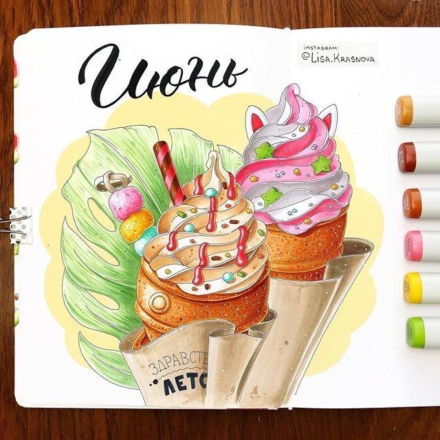 Скетчи маркерами Десерты