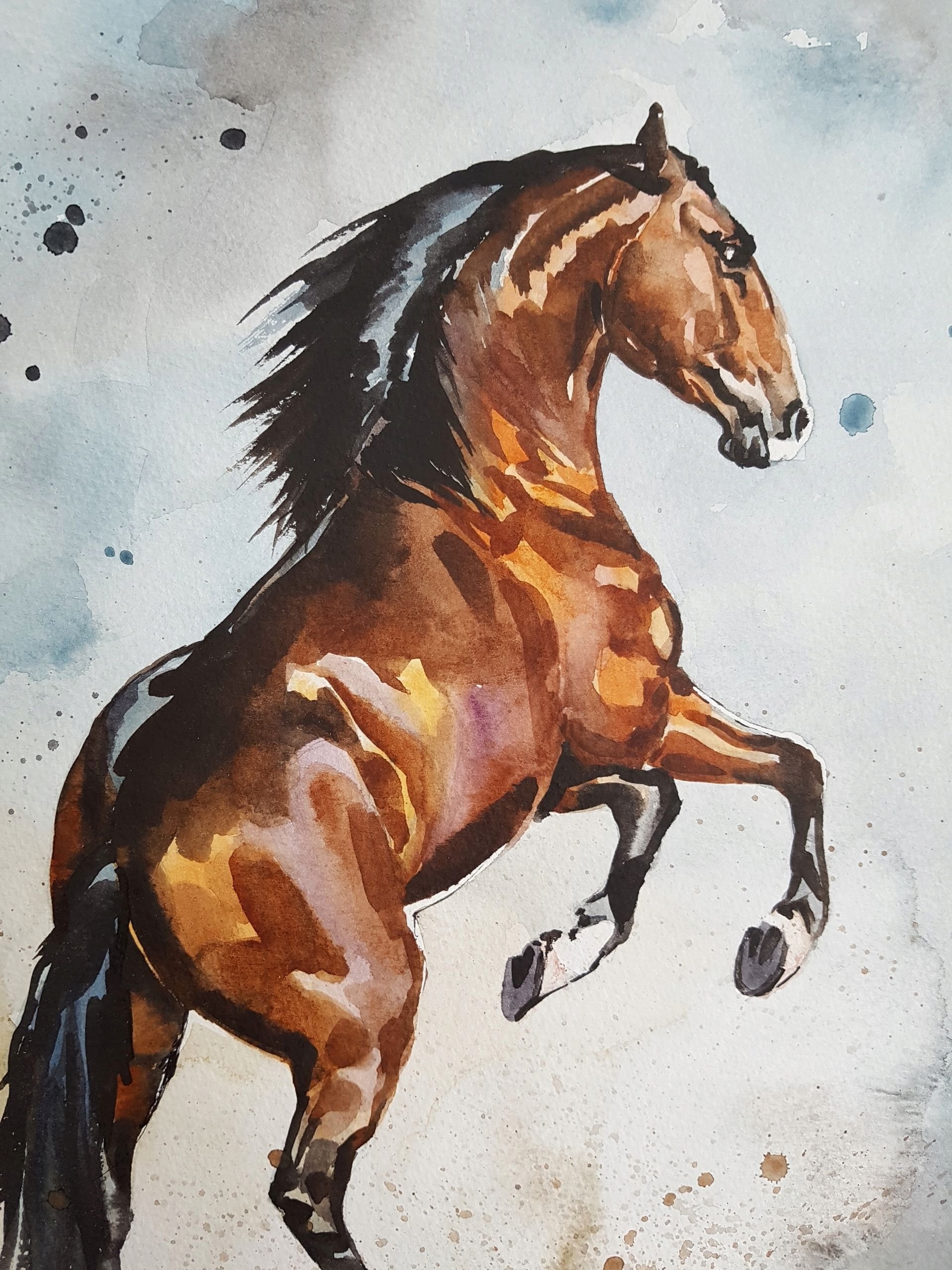 Лошадь акварелью