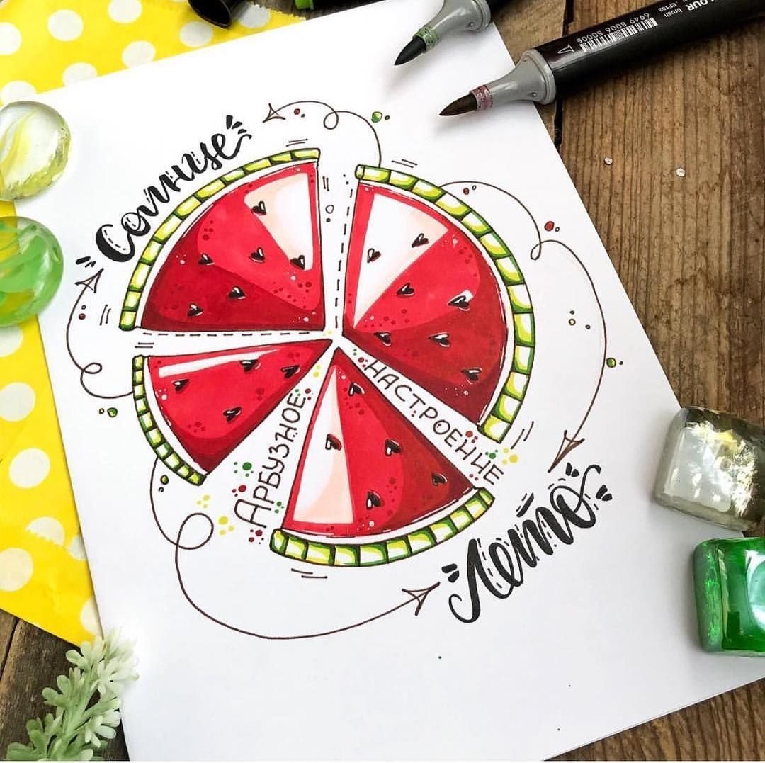 Арбузы в скетчбук маркерами