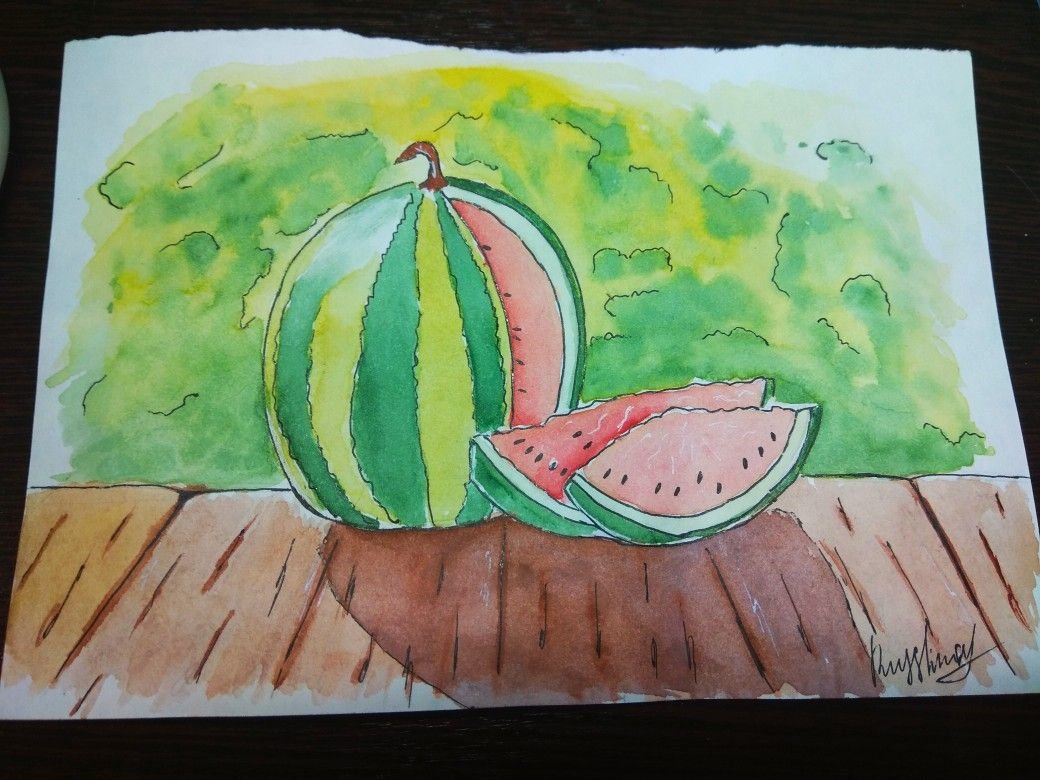 Арбуз акварелью