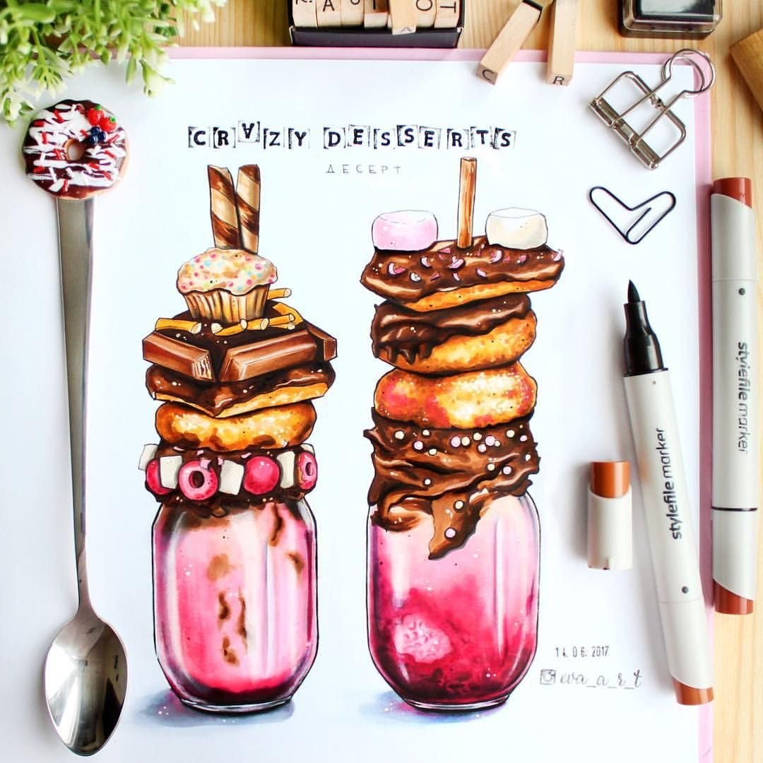 ![Рисунки десертов маркерами]()