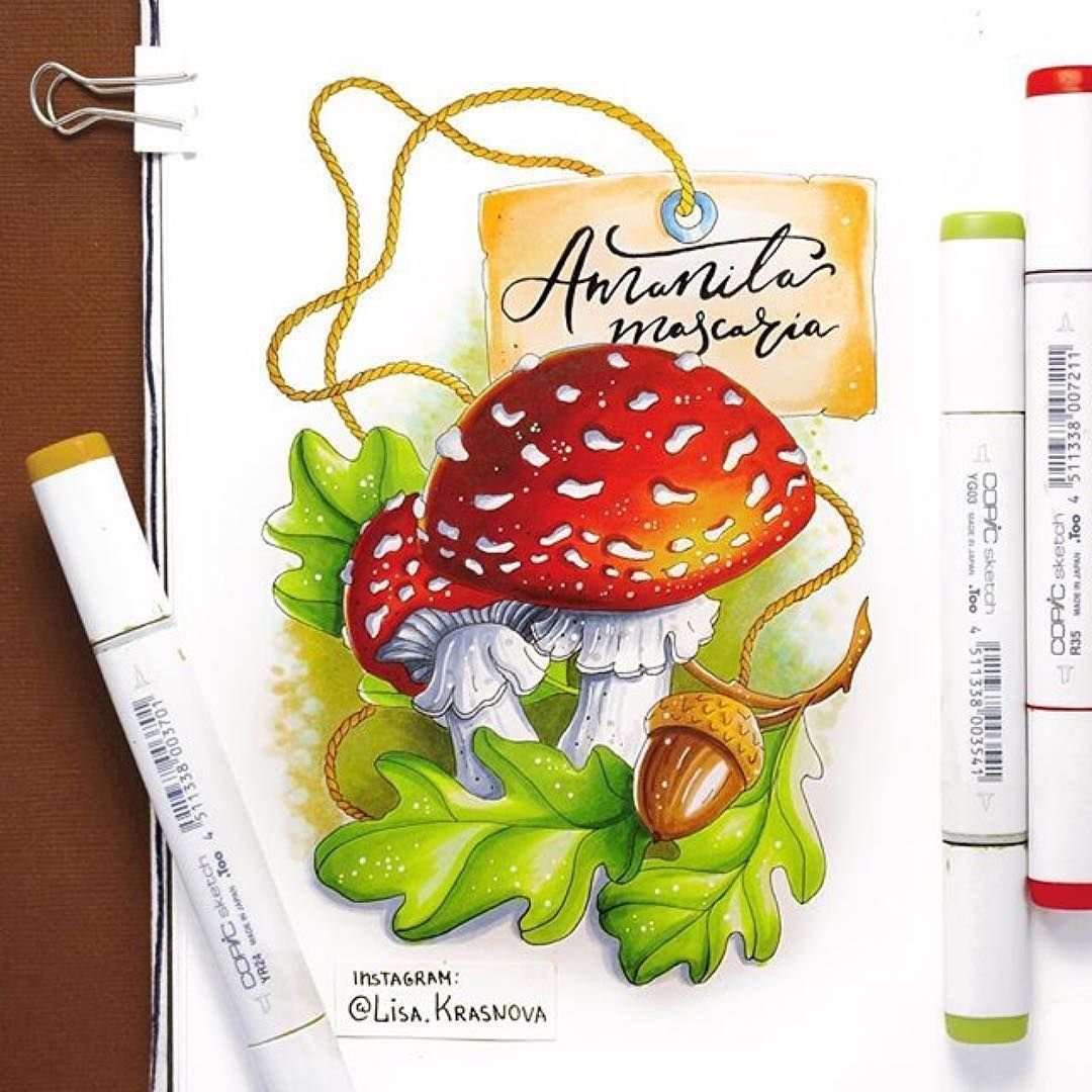 Грибы скетчинг маркерами