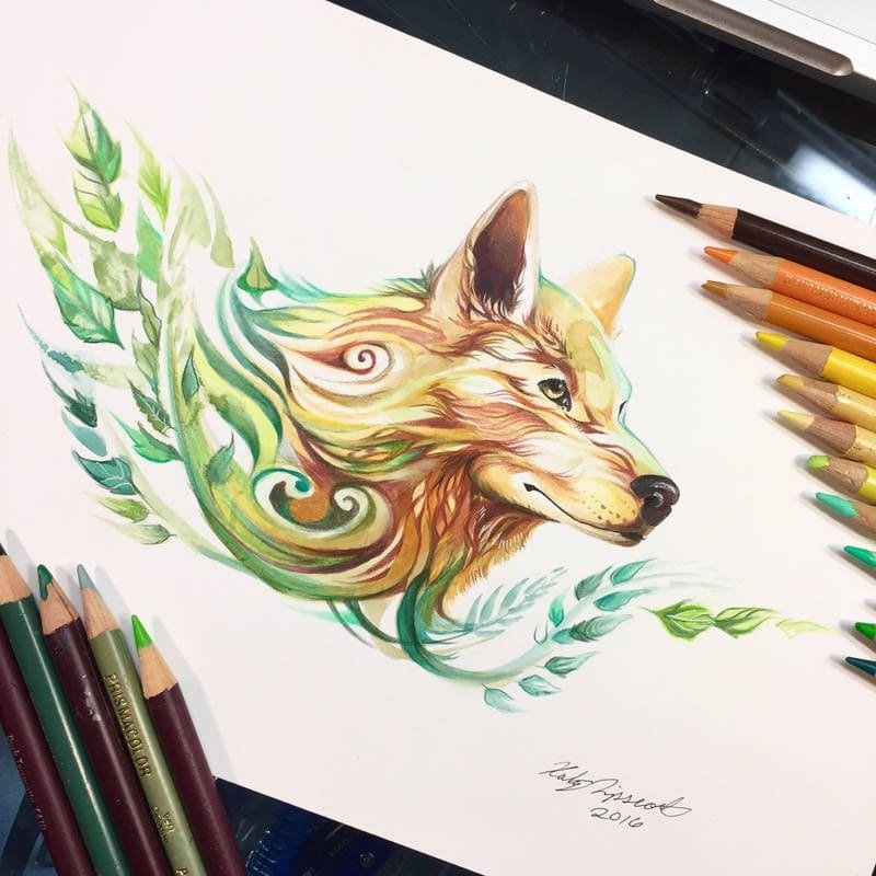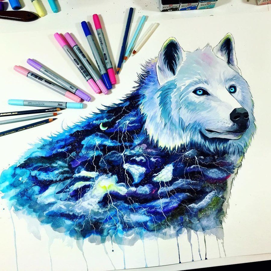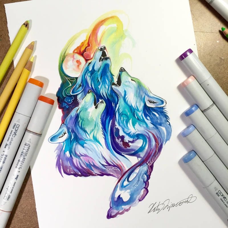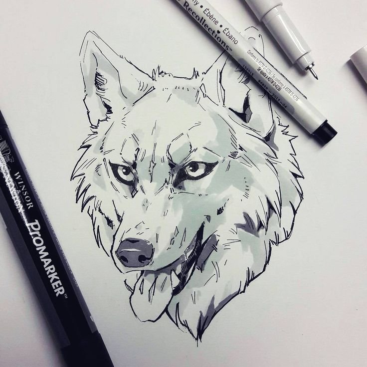 ![Волк скетч маркерами]()