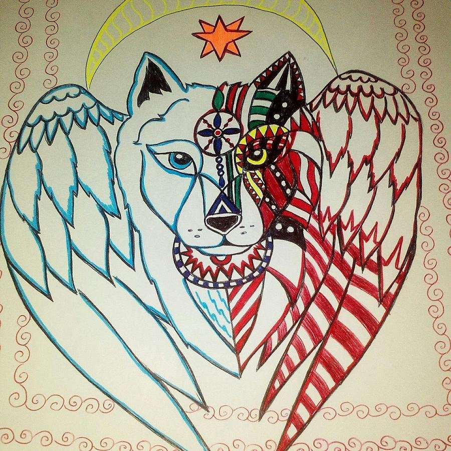 ![Волки красивые маркерами]()