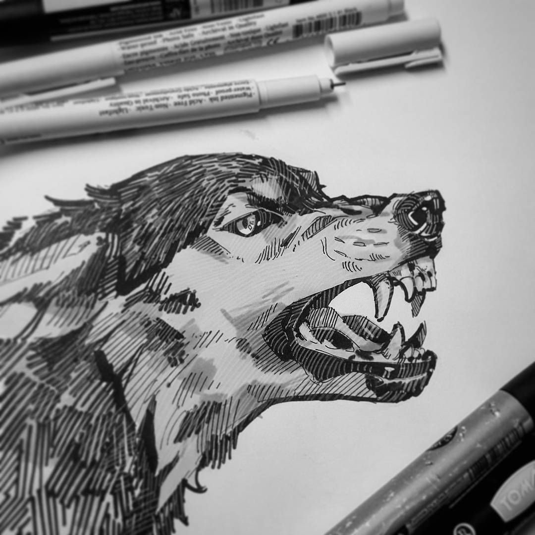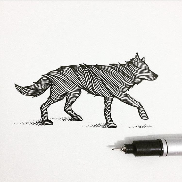 ![Волк черной ручкой]()
