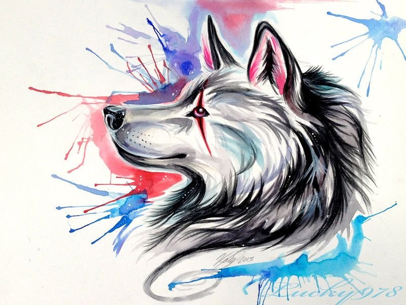 ![Волк рисунок цветной]()