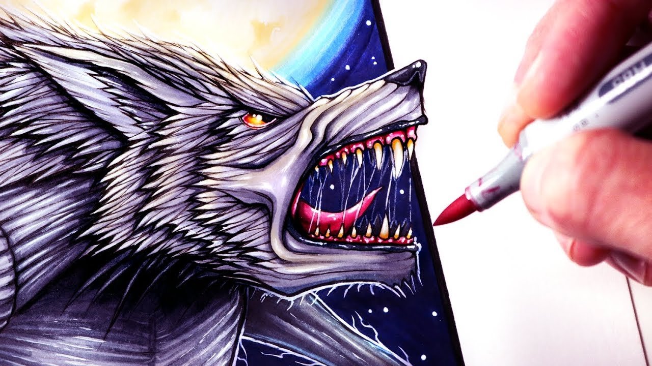 ![Скетчинг маркерами волк]()
