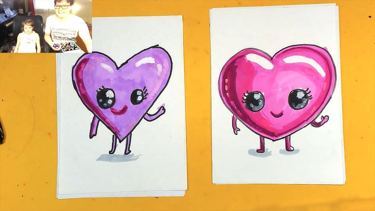 Милые рисунки маркерами с сердечком