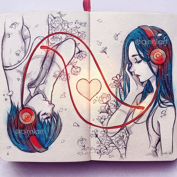 ![Идеи для рисунков в скетчбуке]()