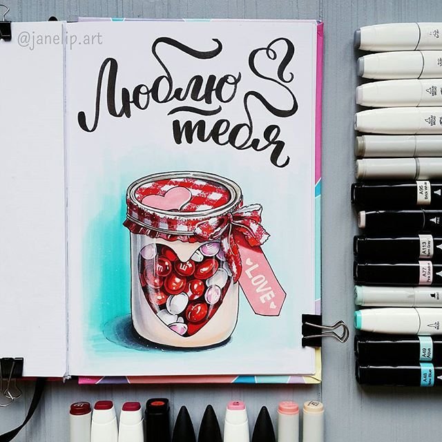 ![Валентинки скетч маркерами]()