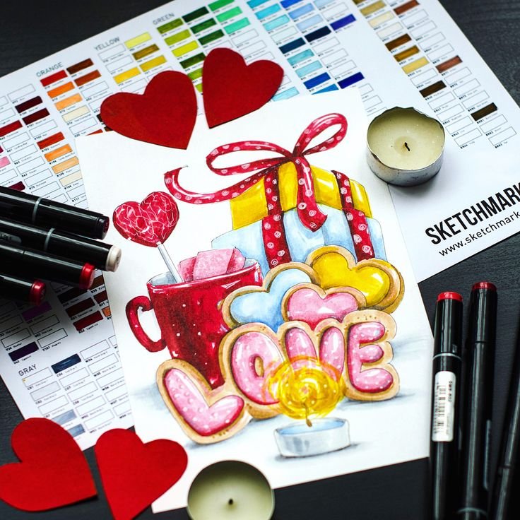 Валентинки скетч маркерами