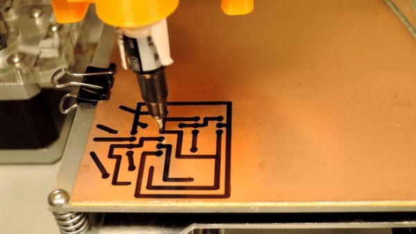 ![Рисунок печатной платы маркером на ЧПУ станке]()