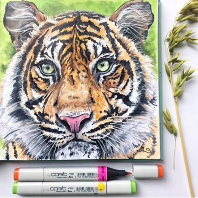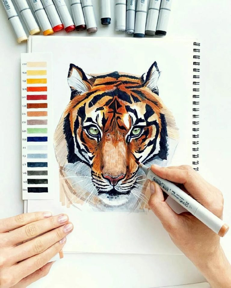 Рисование тигра маркерами