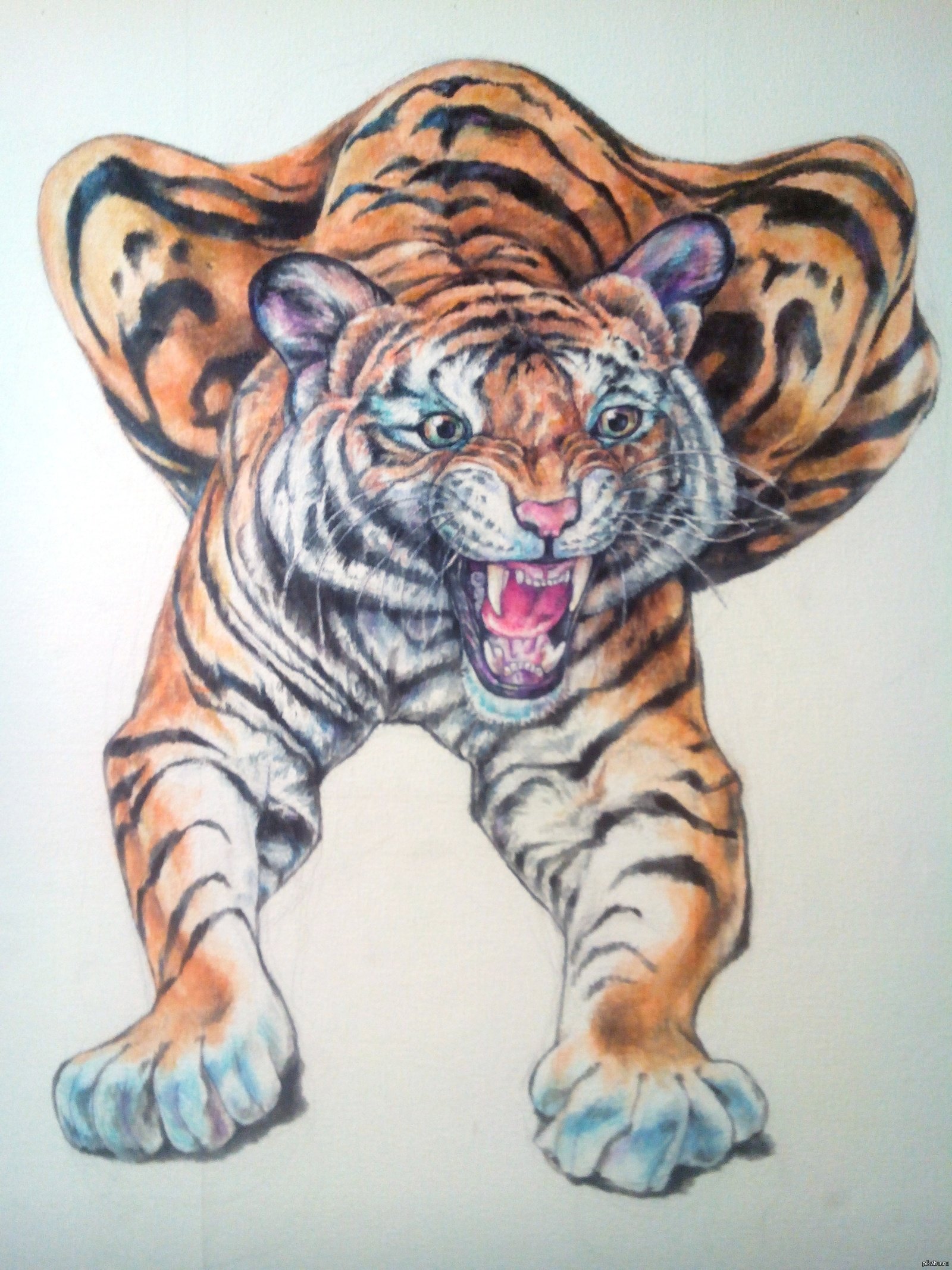 Тигр цветными карандашами