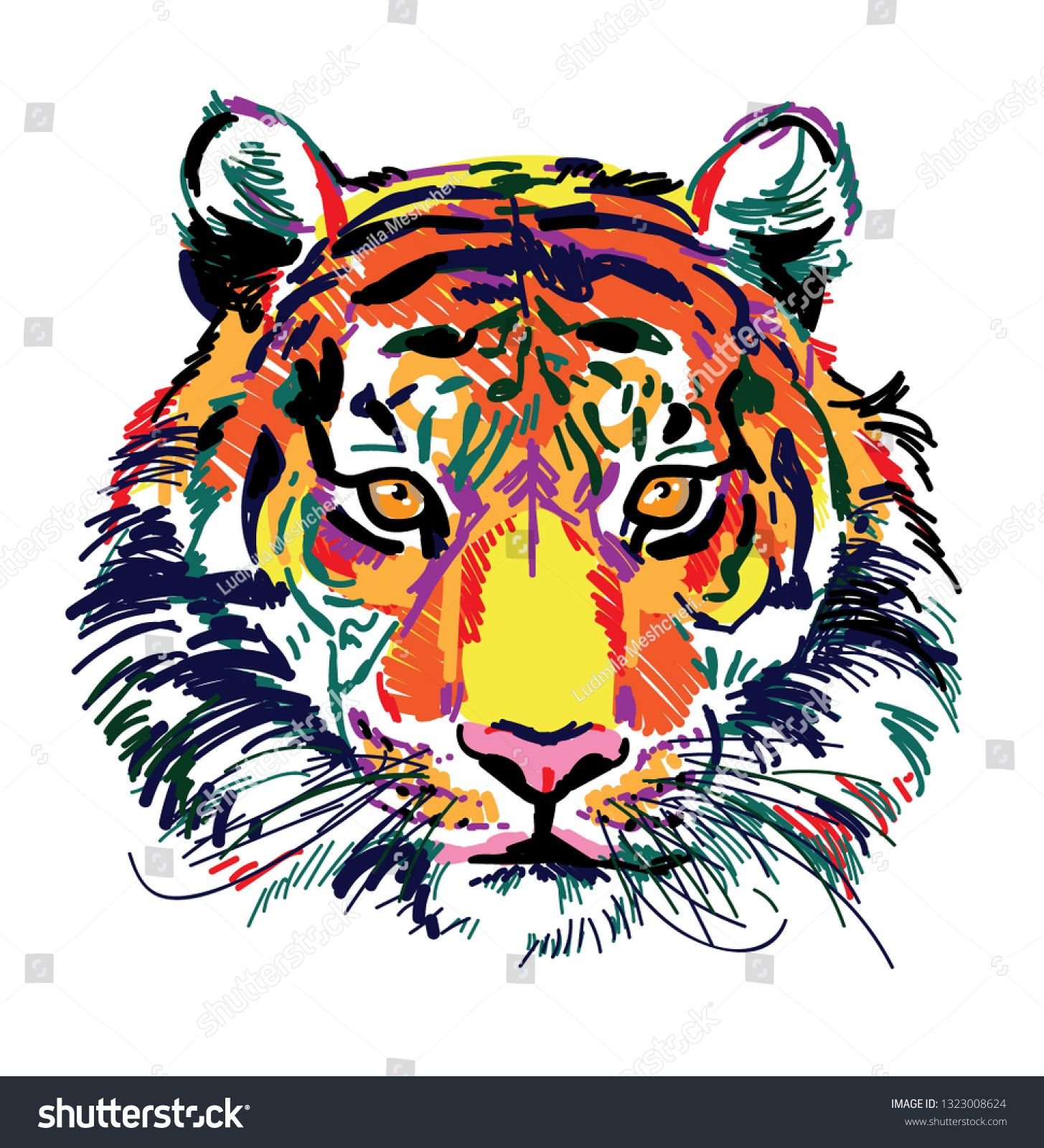 ![Морда тигра фломастерами]()