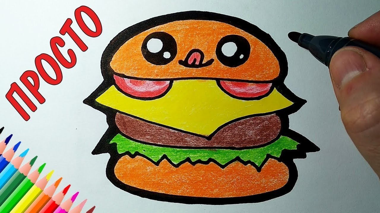 ![Рисунки маркерами бургер легко]()