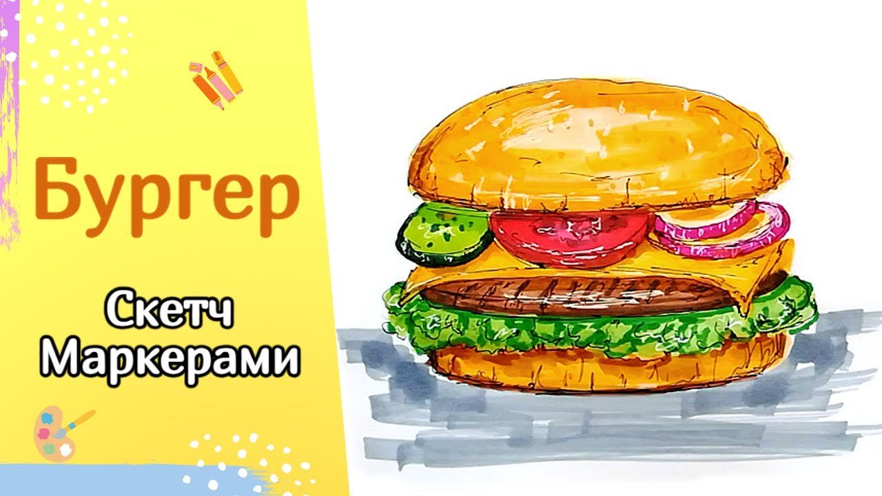 ![Бургер скетчинг маркерами]()