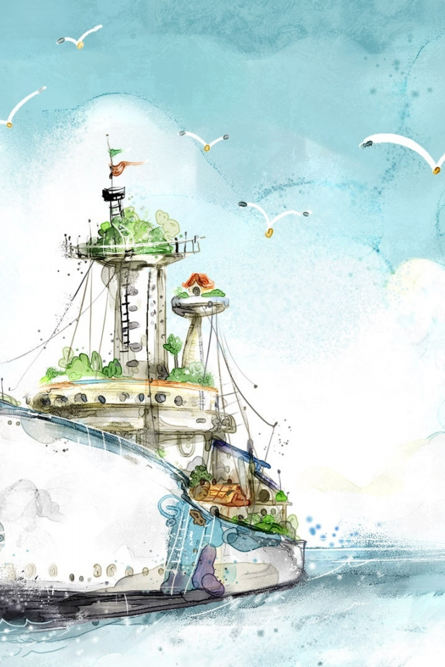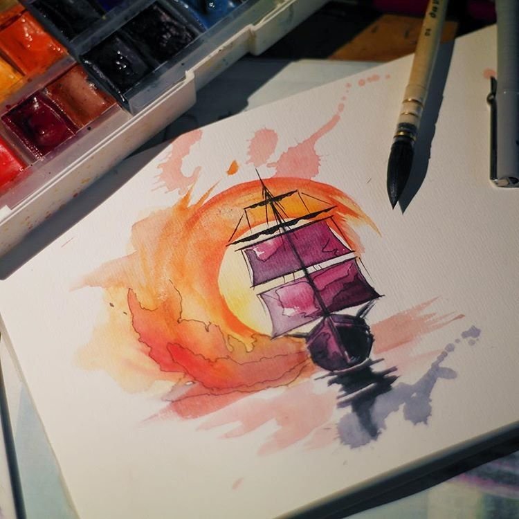 ![Корабль акварелью]()