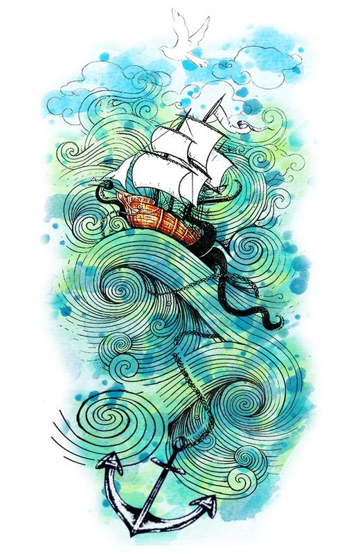 ![Корабль акварель эскиз]()