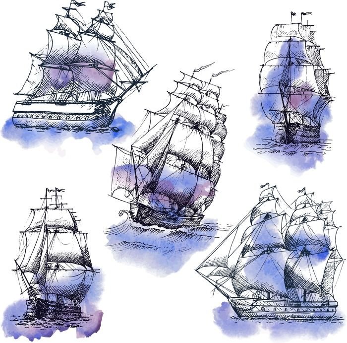 ![Парусник акварельный скетч]()
