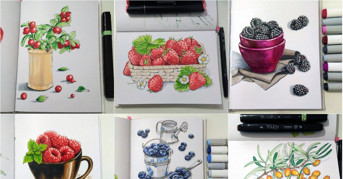 ![Ягоды маркерами для скетчинга]()