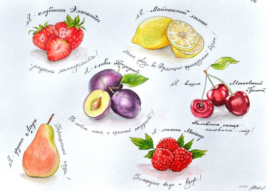 Скетчи акварелью фрукты