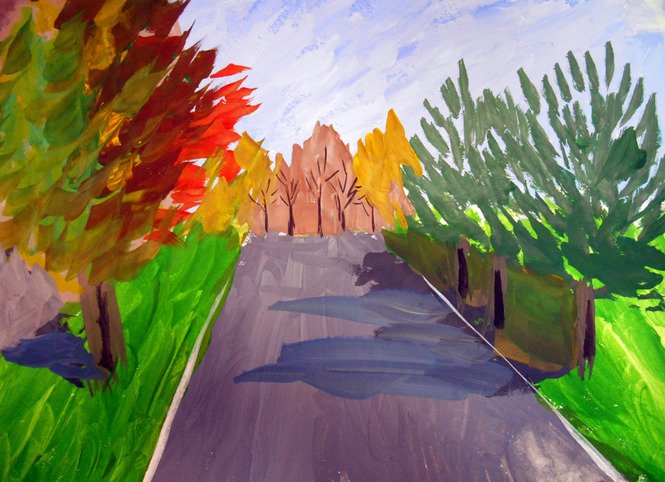 ![Пейзаж осени фломастерами]()