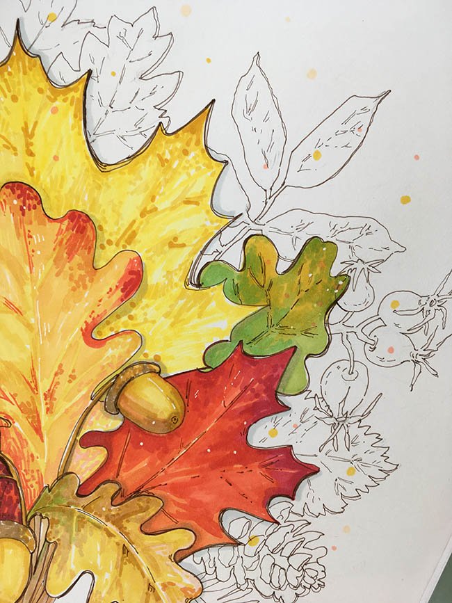 Осенние листья маркерами