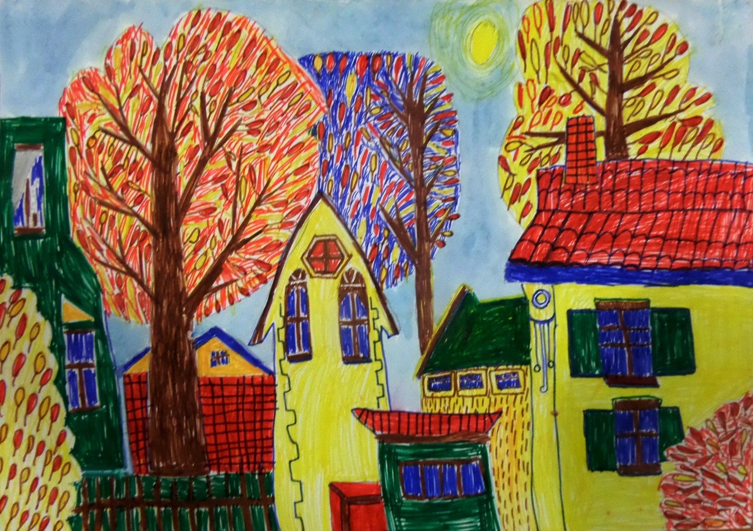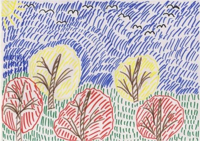 Рисунок детский фломастерами осень
