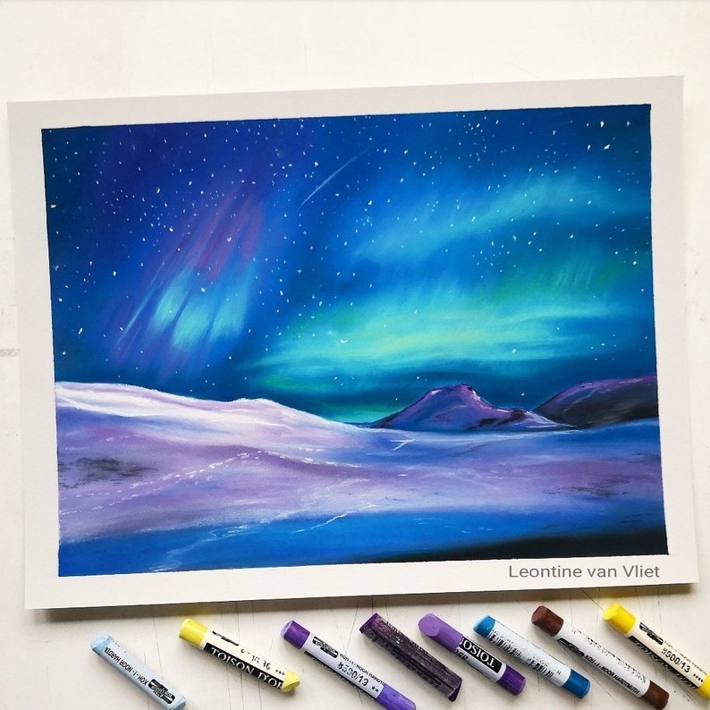 ![Северное сияние масляной пастелью]()