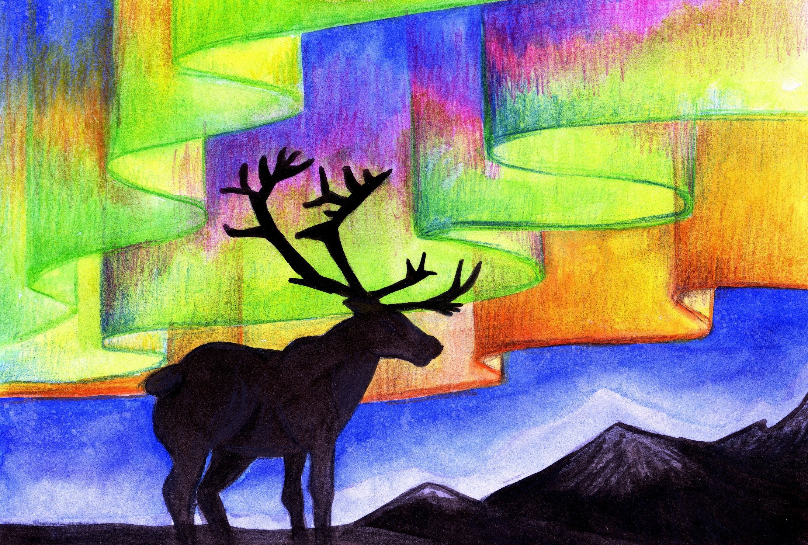 ![Северное сияние детский рисунок]()