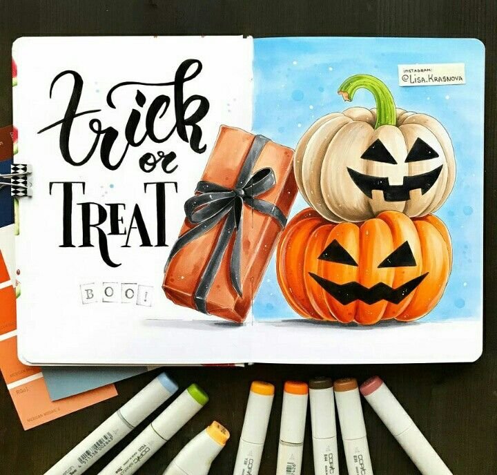 ![Идеи для скетчбука в стиле Хэллоуин]()