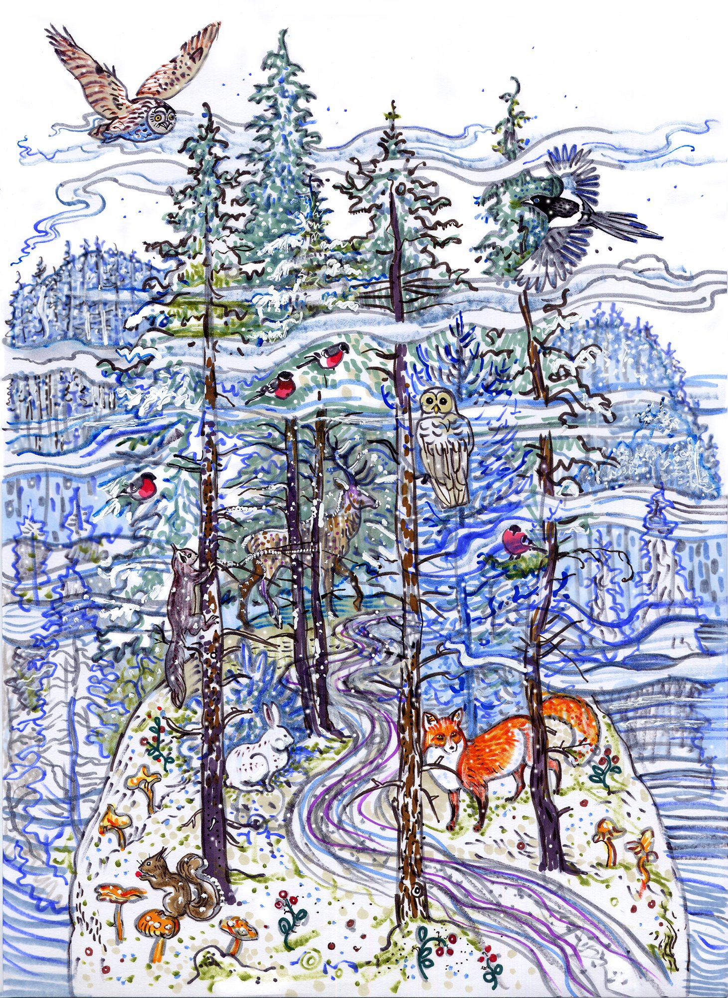 ![Лёгкие рисуется фломастером зимние рисунки]()