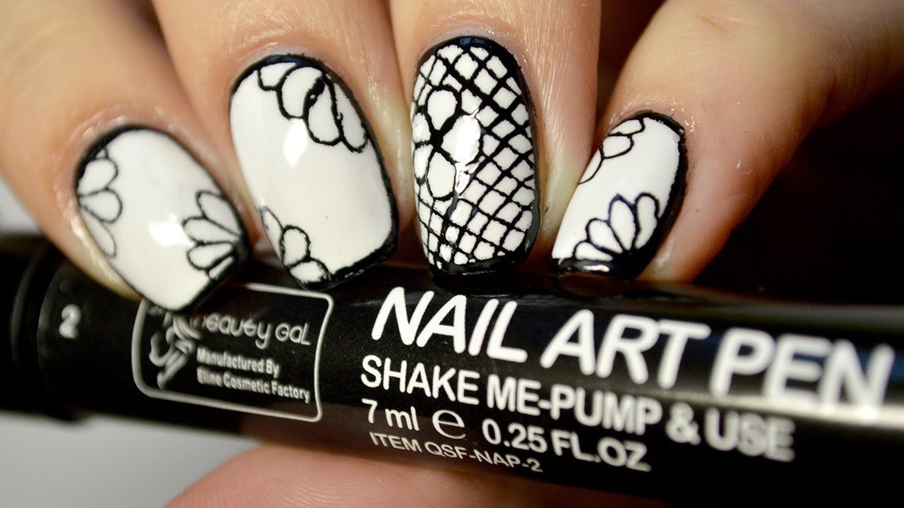 Рисунки на ногтях маркером черным