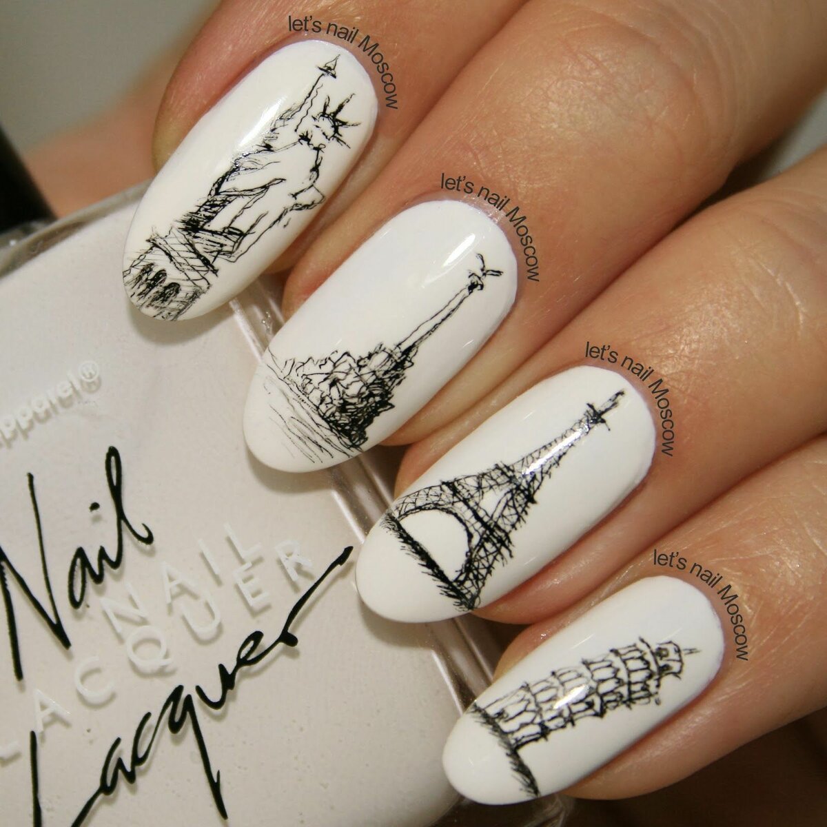 ![Маникюр с рисунком Эйфелевой башни]()