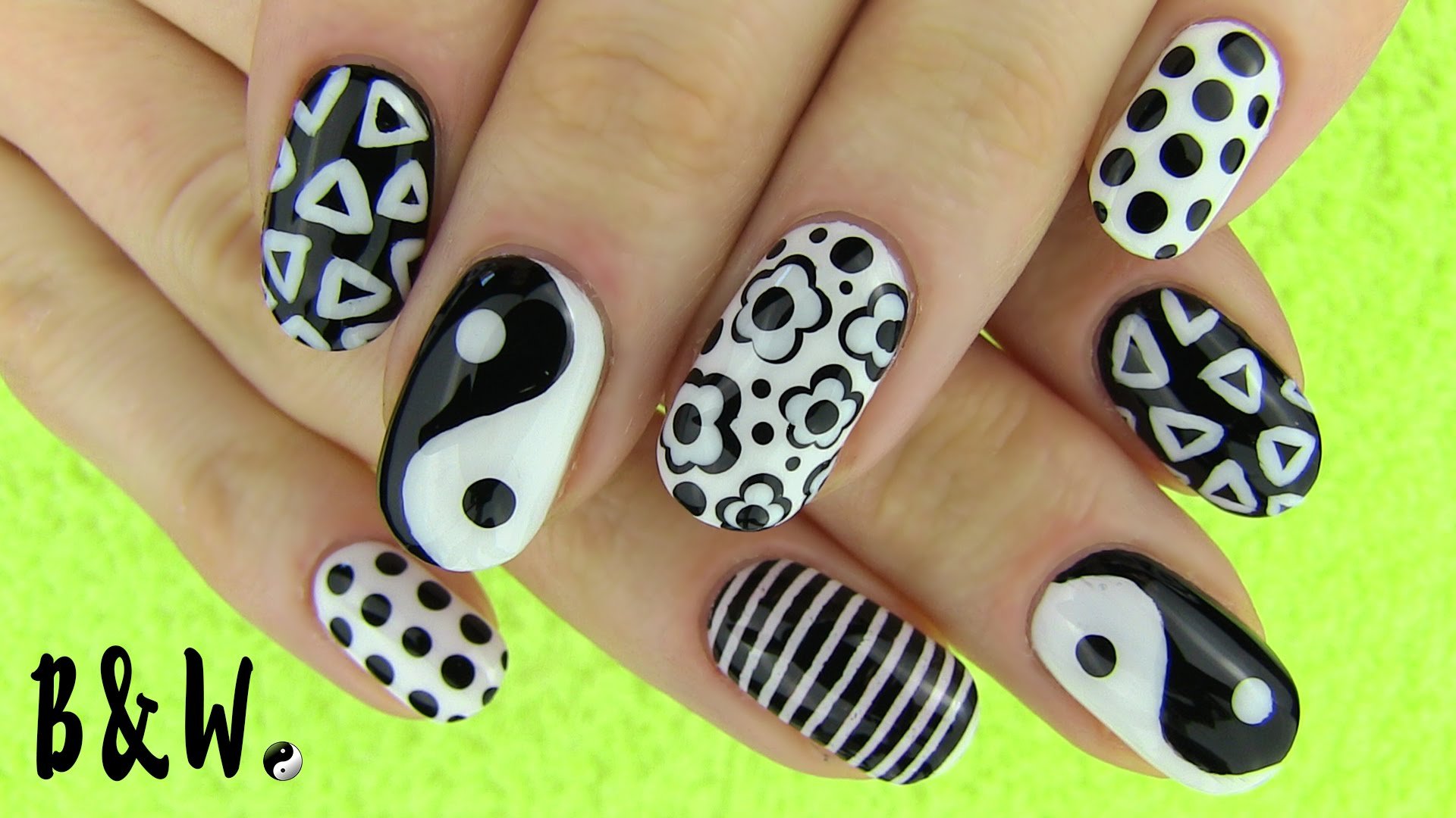 Чёрно-белый маникюр с наклейками