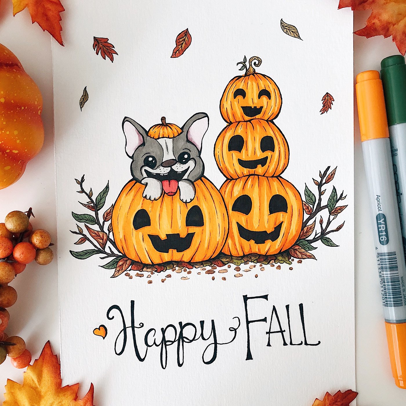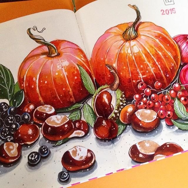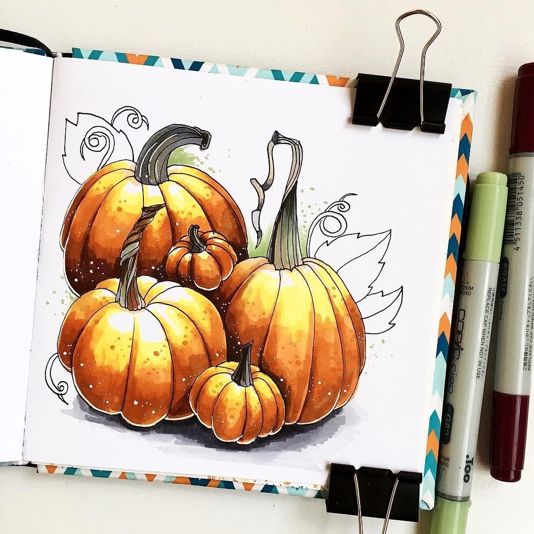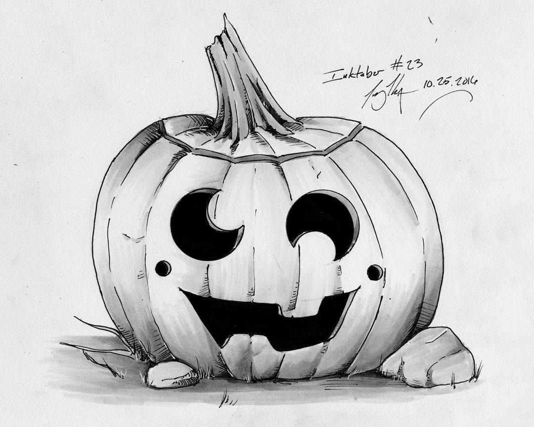 ![Хэллоуинская тыква рисунок маркером для скетчинга]()
