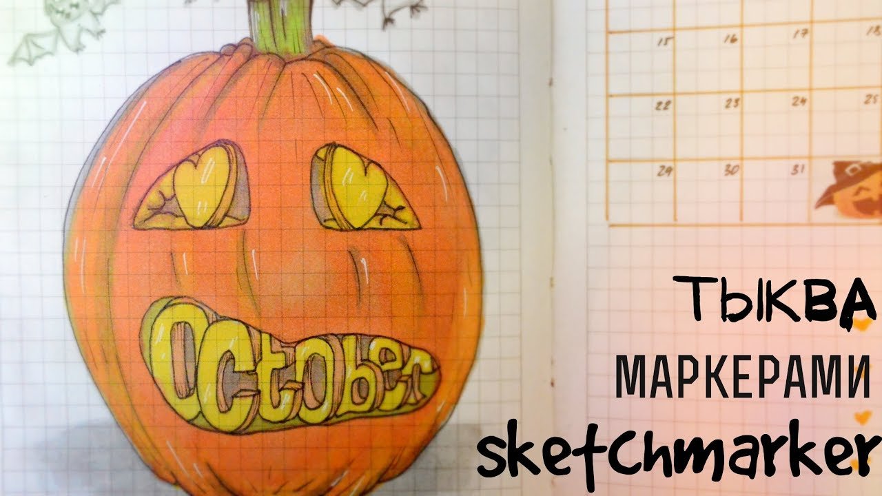 Хэллоуинская тыква рисунок маркером для скетчинга