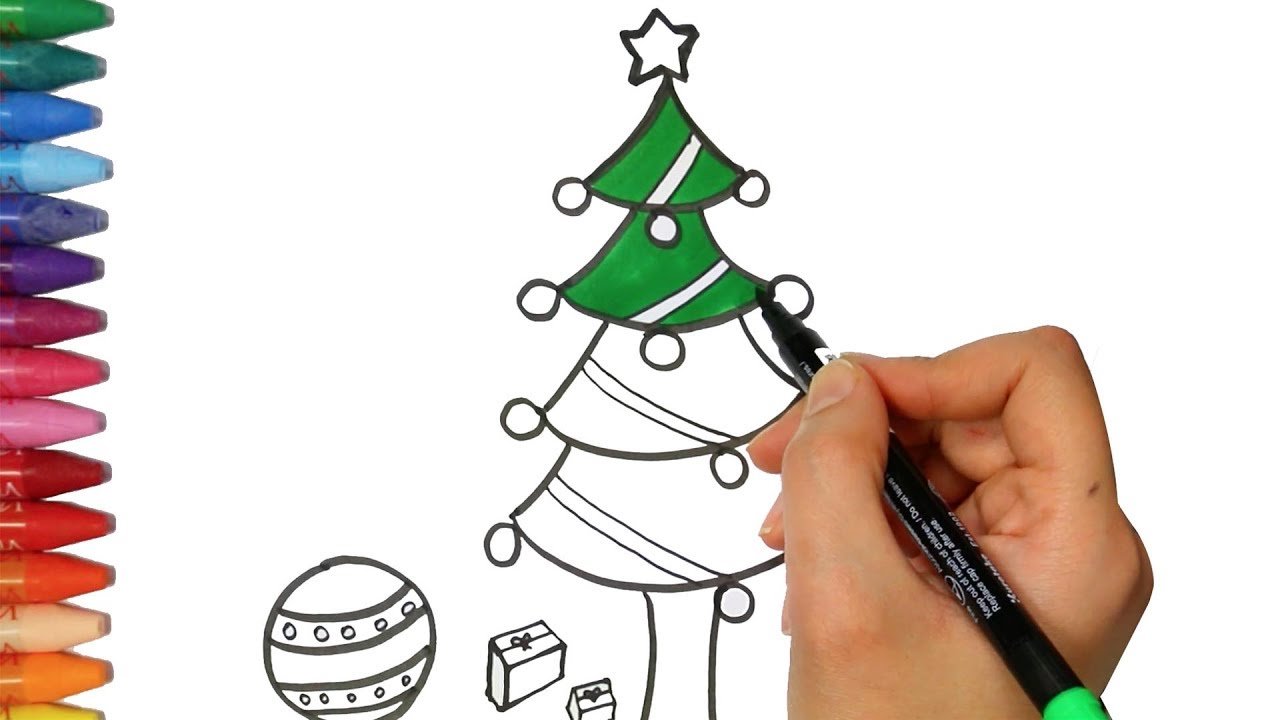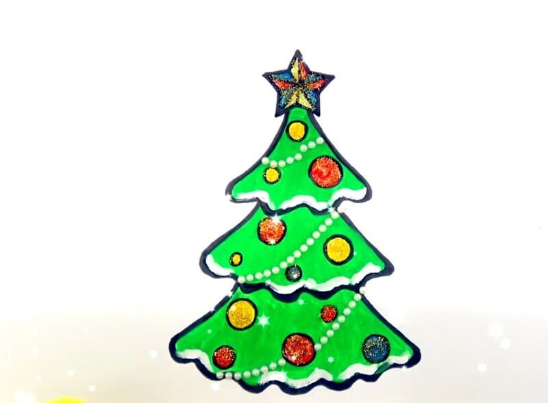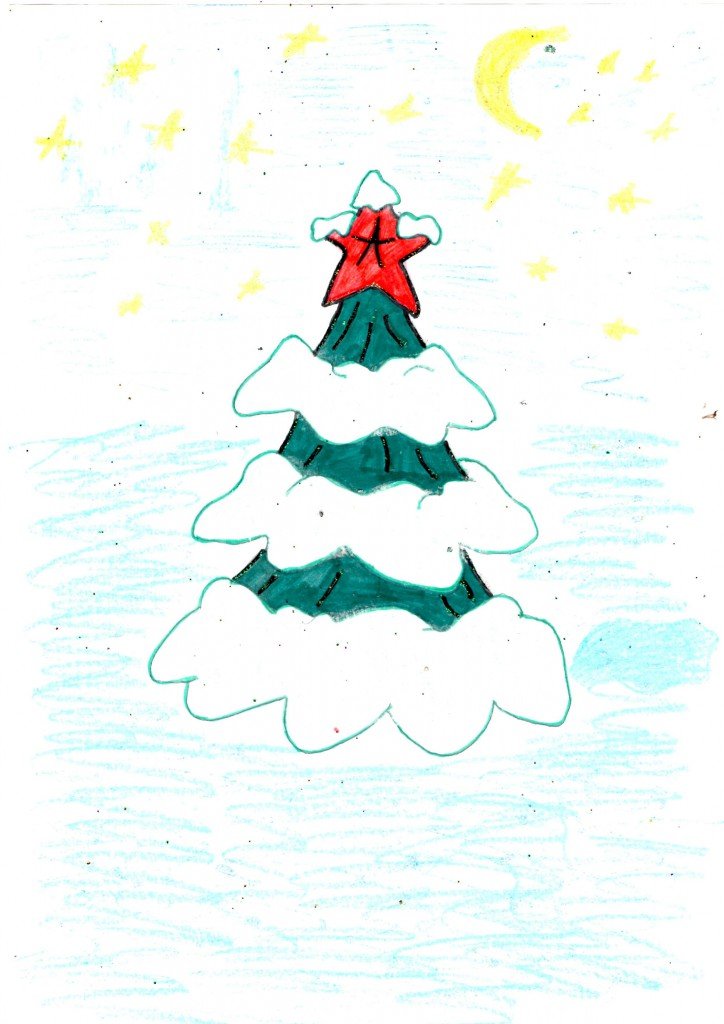 ![Новогодняя елка рисунок фломастерами]()