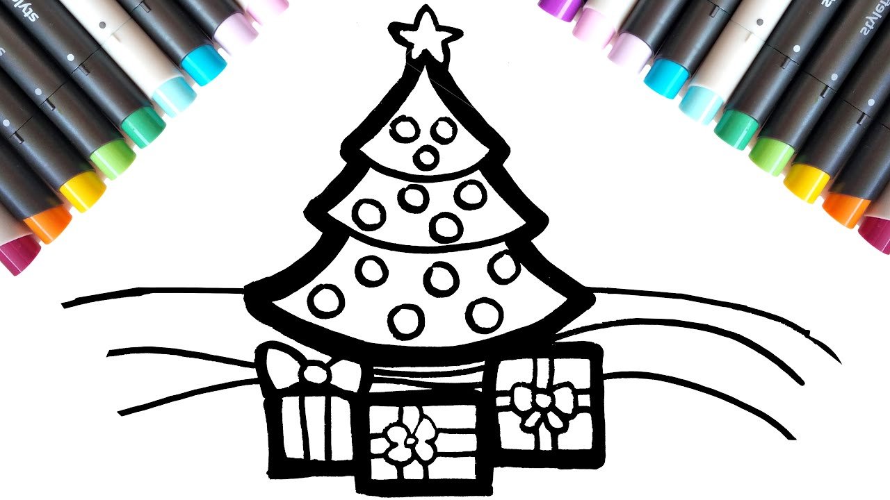 ![Новогодняя елка скетч маркерами]()