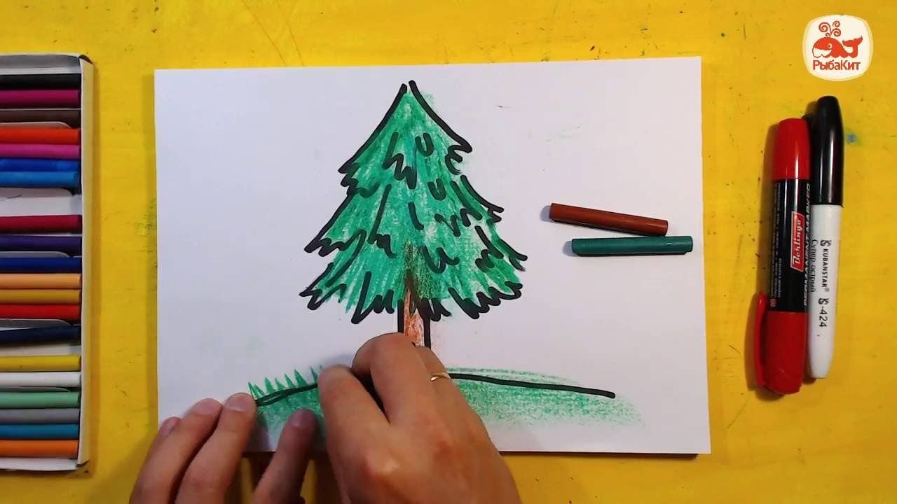 ![Нарисовать елку маркерами]()