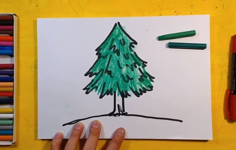 Нарисовать елку маркерами