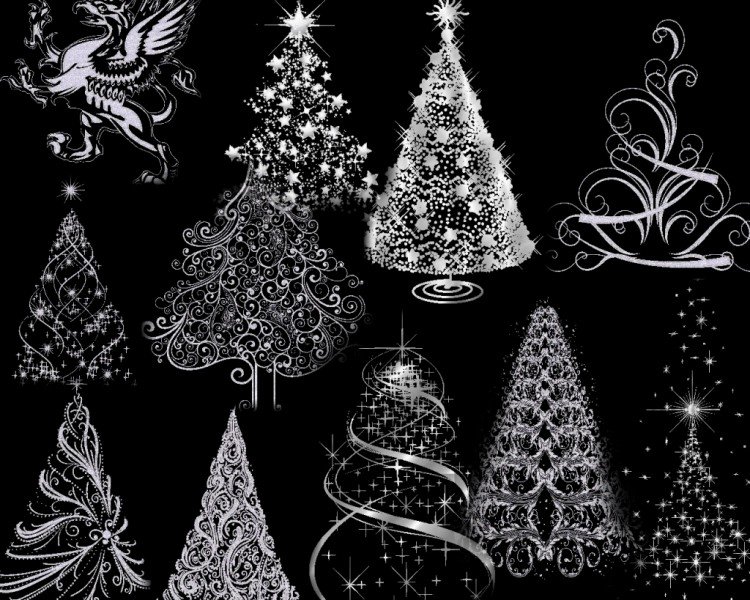![Белая елка на черном фоне]()