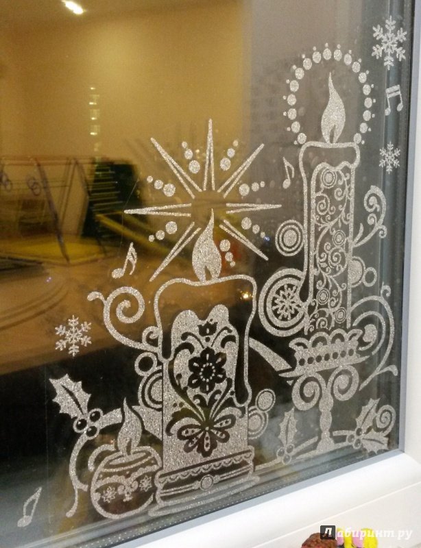 Украшение стекол на новый год