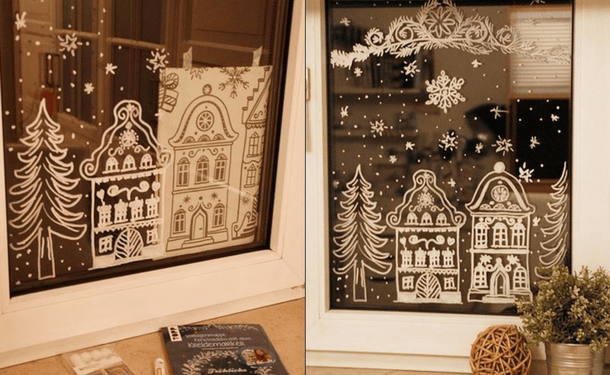 ![Рисование зимы на окнах мелом]()
